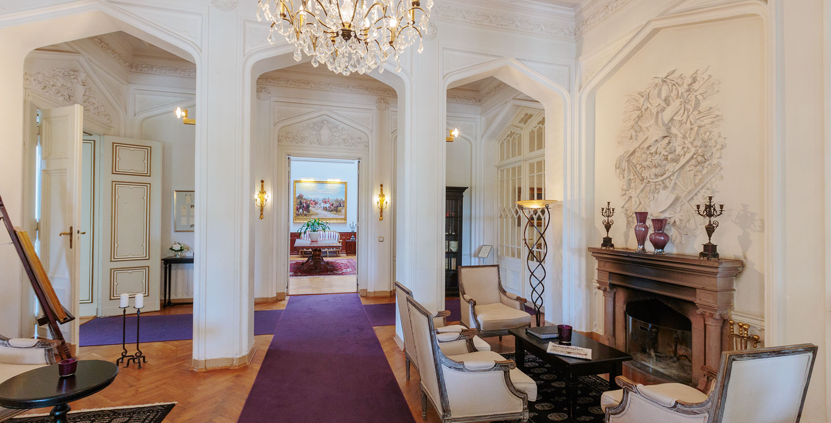 Unser Schloss-Hotel mit seinen 25 geschmackvoll eingerichteten Zimmern und Suiten, dem Gartensaal mit Terrasse und dem Restaurant Lenné bietet ein ganz besonderes Ambiente – gespickt mit diversen Highlights wie unter anderem dem vom Staat New York geschenkten Kopf eines Wapiti.