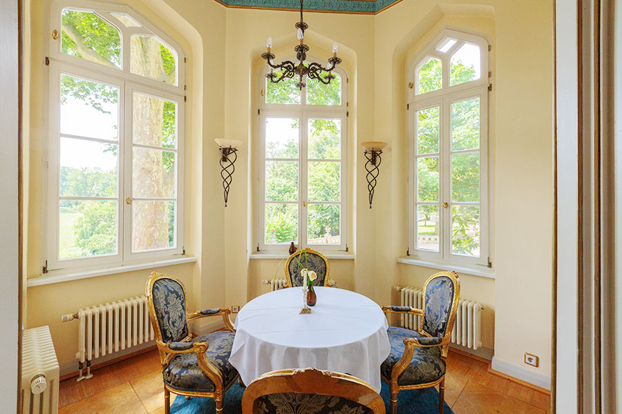 Exklusive Familienfeiern im kleineren Rahmen oder private Besprechungen mit Kollegen – im englischen Salon sind Sie da genau richtig. Der separat angeschlossene Erker eignet sich hervorragend für ein romantisches Essen zu Zweit.