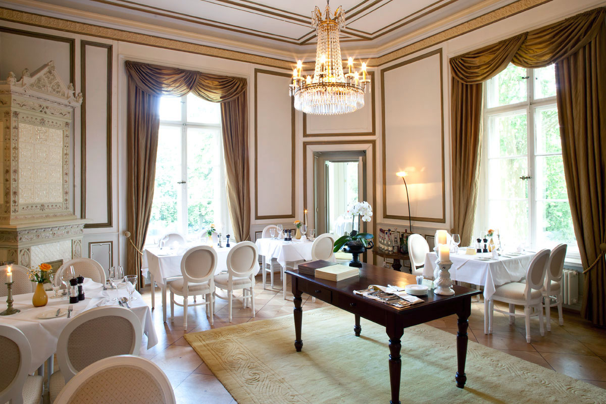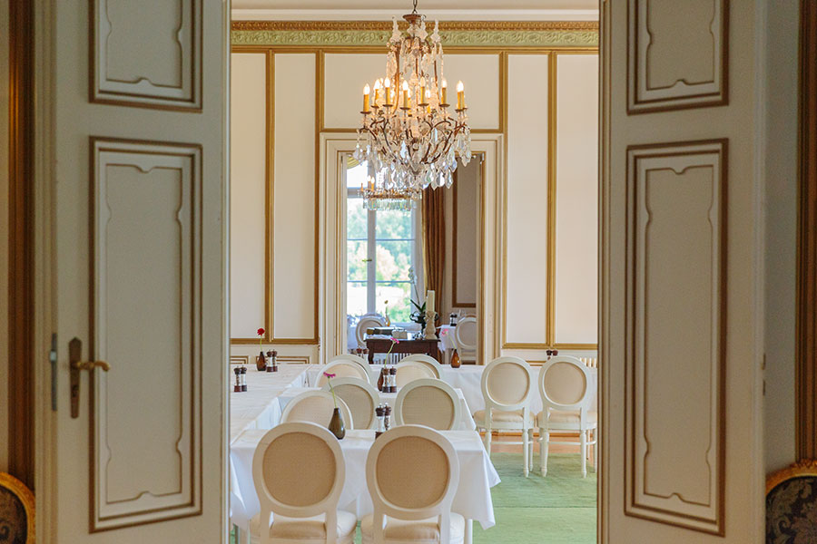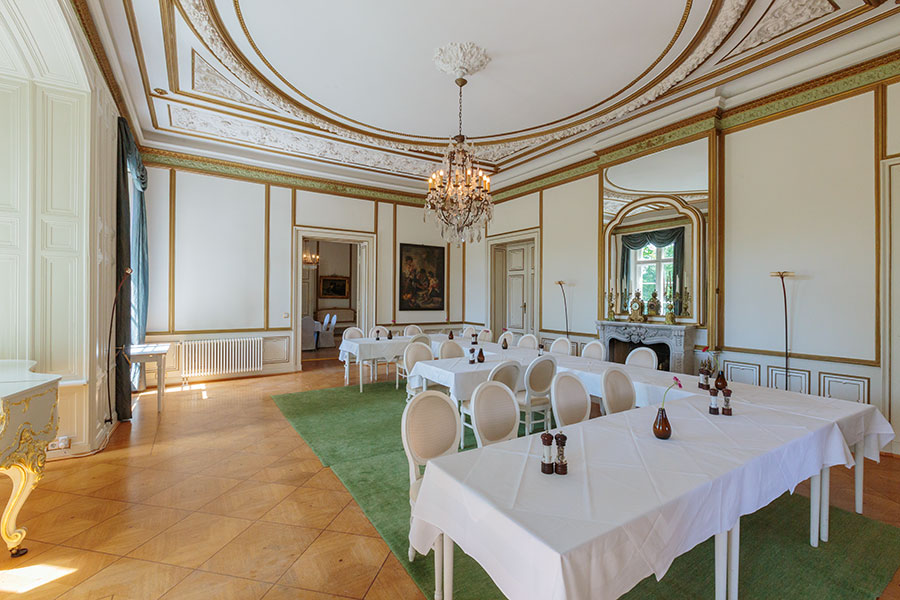 Ein großzügiger, von Tageslicht durchfluteter Saal, hervorragend geeignet für Tagungen, Seminare und Banketts. Große, nach Süden ausgerichtete Fensterfront mit Blick in den Park und direktem Zugang zur Terrasse. Das angrenzende Restaurant bietet bei Feierlichkeiten Platz für etwa 20 Personen.